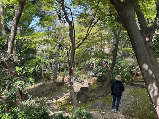 庭園は、崖線という地形を取り入れた回遊式庭園で、石灯籠などの添景物が多く配置され、春はツツジの花や新緑を、秋はモミジ等の美しい紅葉を楽しむことができます。